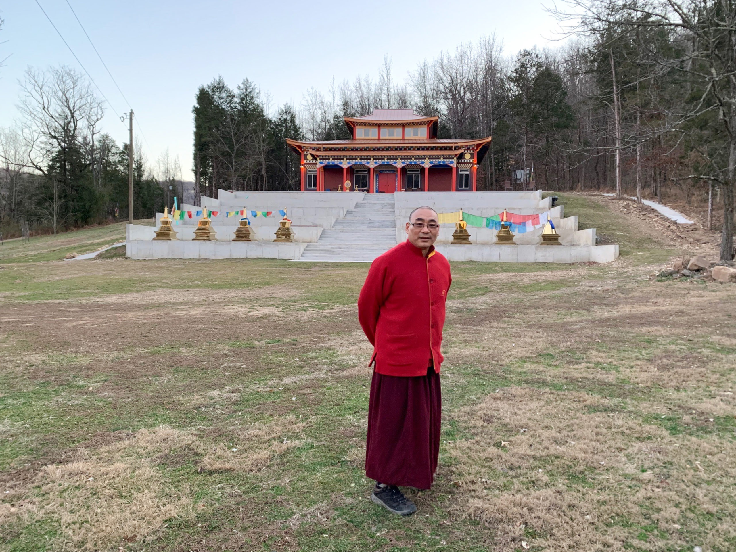 In 2016, Khentrul Rinpoche was walking the land with a student when they reached an area on the hillside overlooking the main grounds. Rinpoche knew it was a perfect location for the temple, so that same year we broke ground and began construction. Several of Khentrul Rinpoche’s skilled students have worked to design, construct, and create the artwork for the temple.