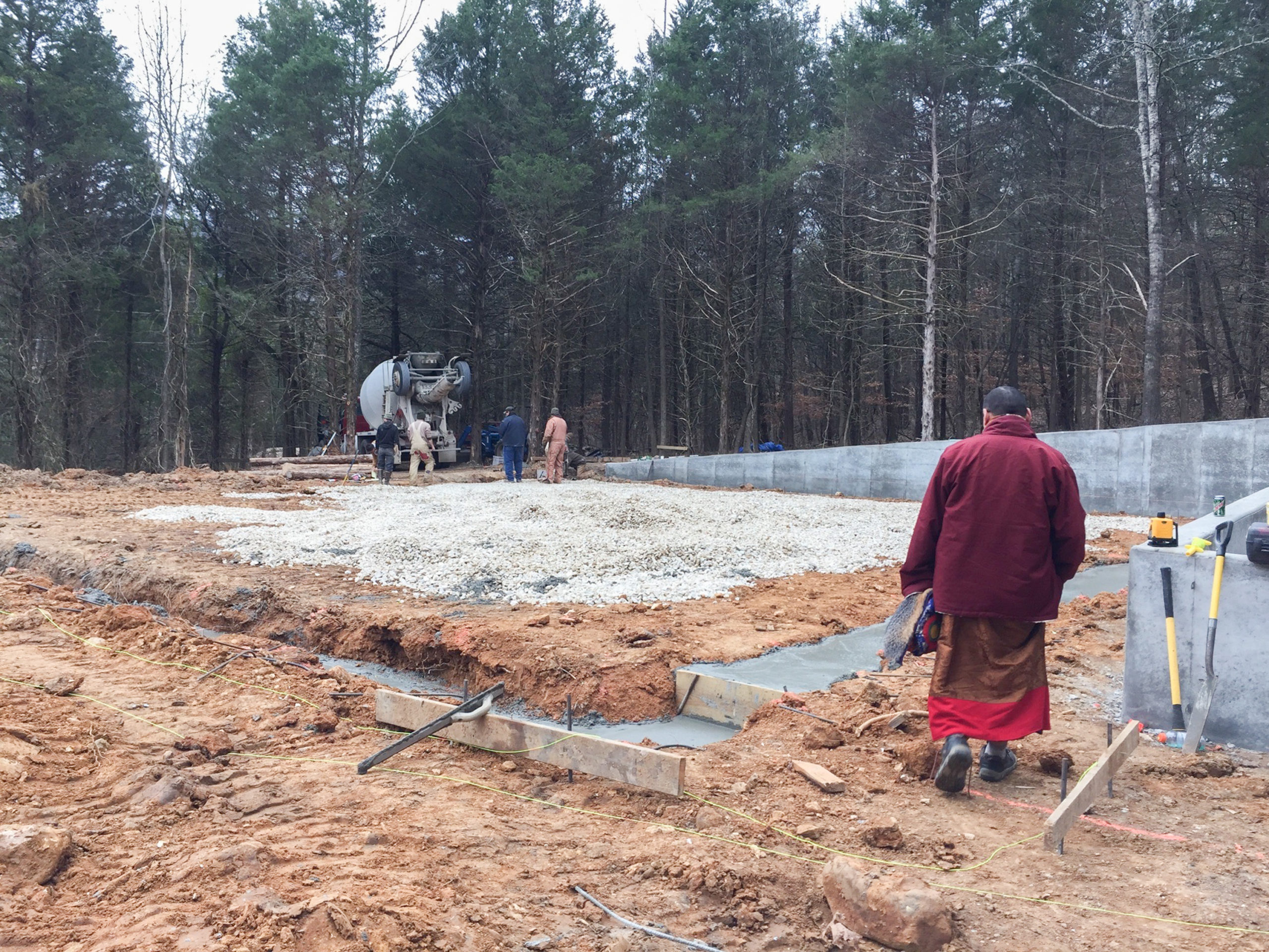 My intentions and aspirations for the land are: to build a temple and establish representations of enlightened body, speech, and mind, such as statues and images that serve as a support for practice; to develop courses for studying Buddhist philosophy in a traditional manner, called a shedra; to initiate a three-year retreat center, called a drubdra; and to establish an area designated for meditation retreats of varying lengths, called a gomdra. This work is already underway and continues.