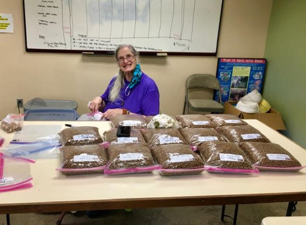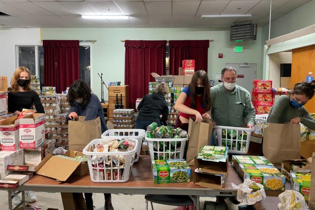 Sangha members assisted volunteer organizations in packing and delivering Thanksgiving food supplies to families in need.