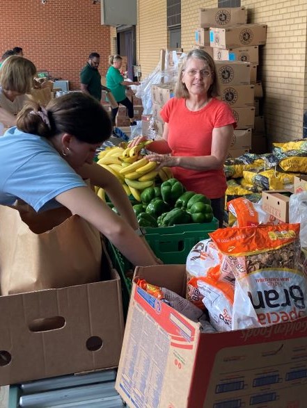 Sangha members boxed and loaded food with United Way for distribution to families with children during the summer when school meals were not available.