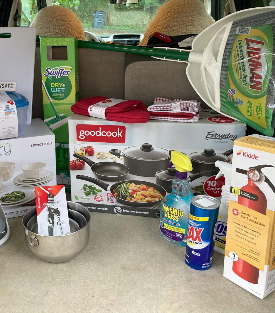 Sangha members purchased supplies and donated them to stock new apartments for women moving out of the AWARE (Women’s Shelter) into new transitional housing to help support them as they transition out of the shelter.