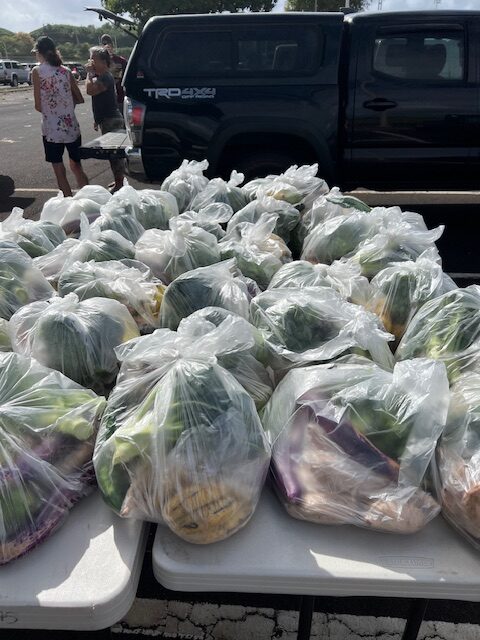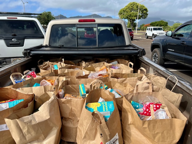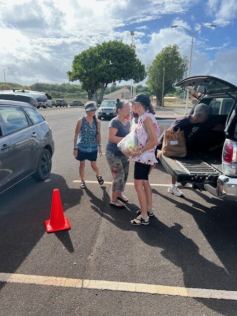 Sangha members joined in a twice monthly food distribution sponsored by St Michael and All Angels Church on Kauai.
