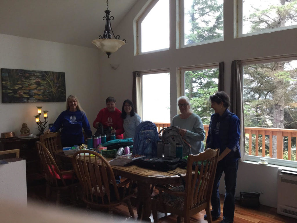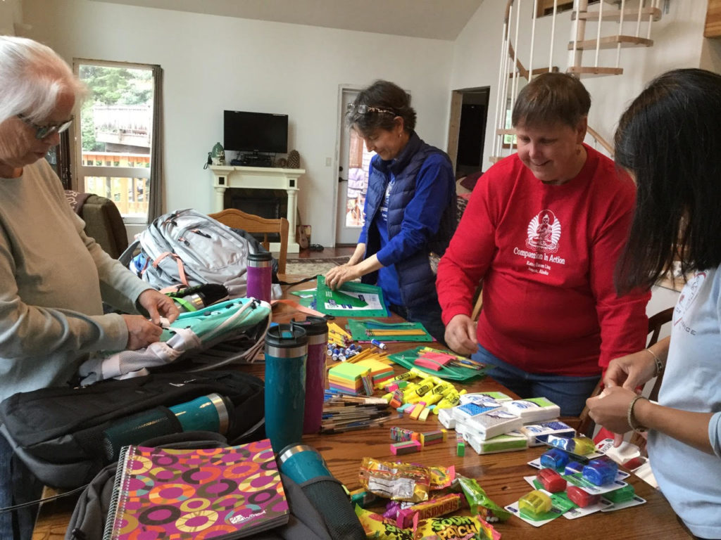 Sangha members purchased school supplies and filled and gave out backpacks to students in need at local school.